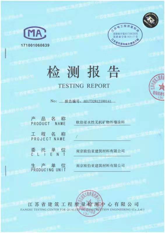無(wú)機(jī)礦物內(nèi)外墻涂料檢測(cè)報(bào)告發(fā)布日期:2021/3/10 19:35:18 瀏覽次數(shù): 次